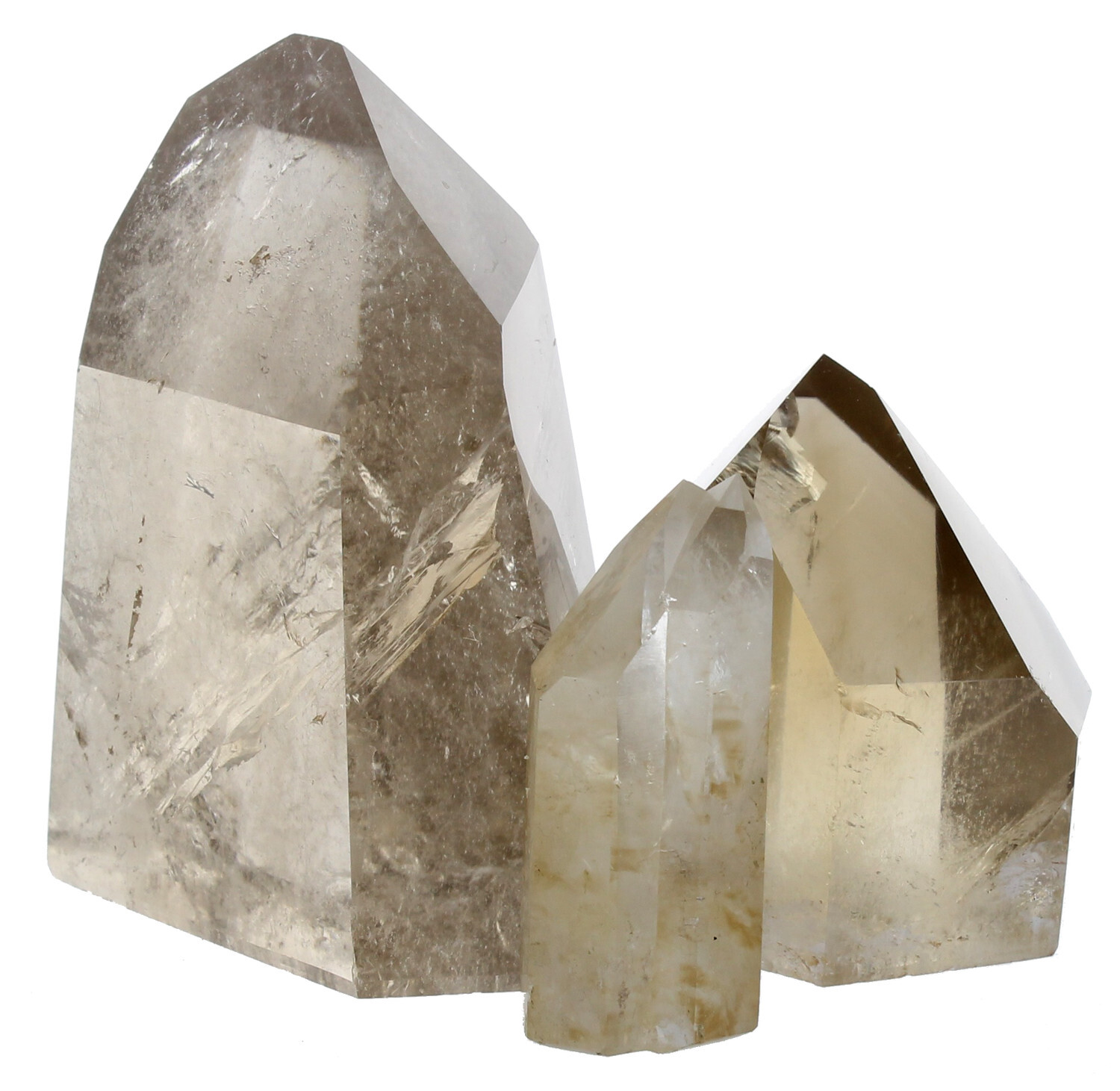 Pointes polies de Quartz Fumé - environ 1 kg. Propriétés : Pierre pragmatique et réaliste, elle aide à s'organiser, à prendre des engagements adaptés à nos possibilités et à les tenir. Guide lors des déménagements ou des grands changements de vie en offrant la stabilité nécessaire pour prendre ses repères et reconstruire ses habitudes.