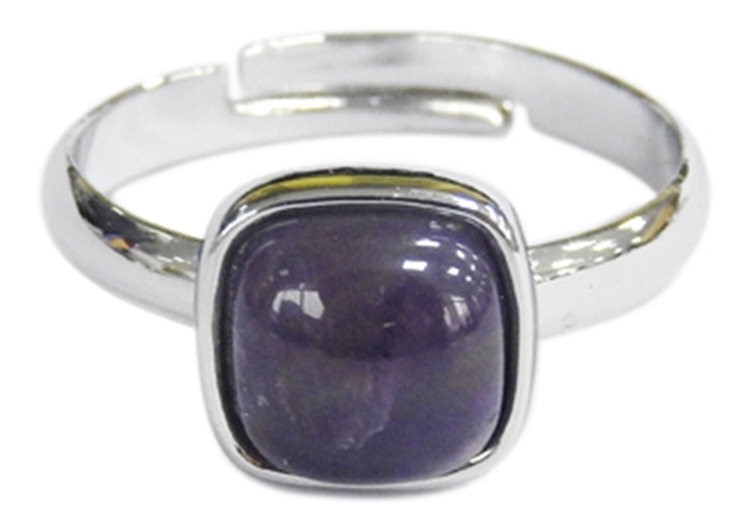 Bague Améthyste Carrée Bombée Métal argenté Ajustable