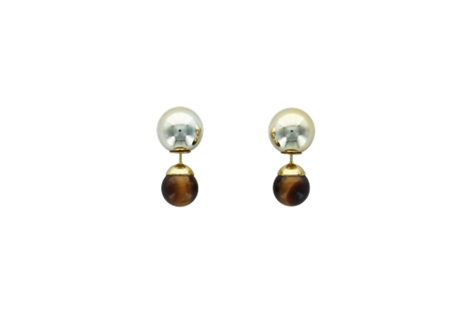 Boucles d'oreilles Oeil de Tigre Boules Réversibles Métal Doré