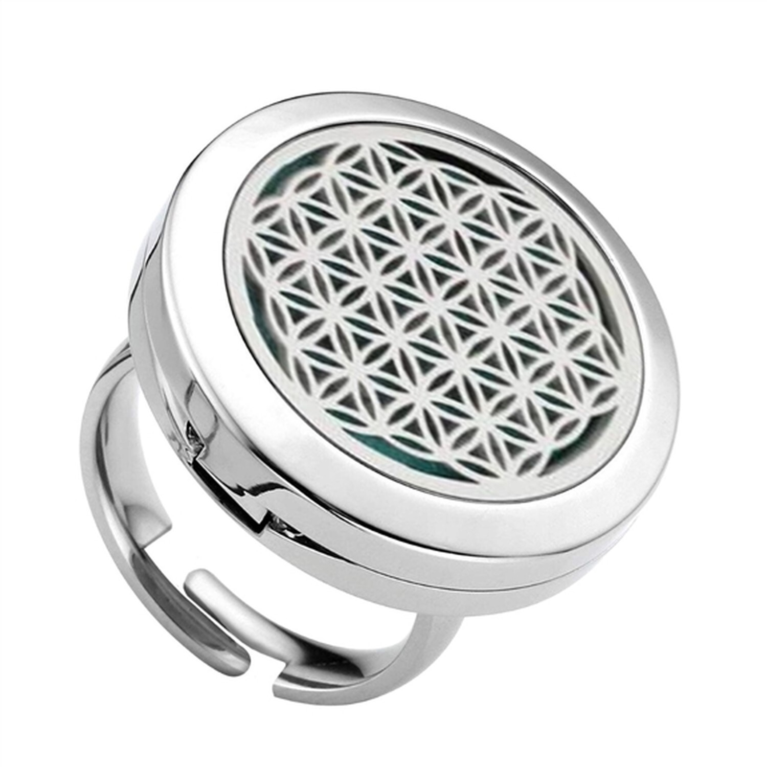 Diffuseur Bague Fleur de vie Argenté Ajustable T58/59/60