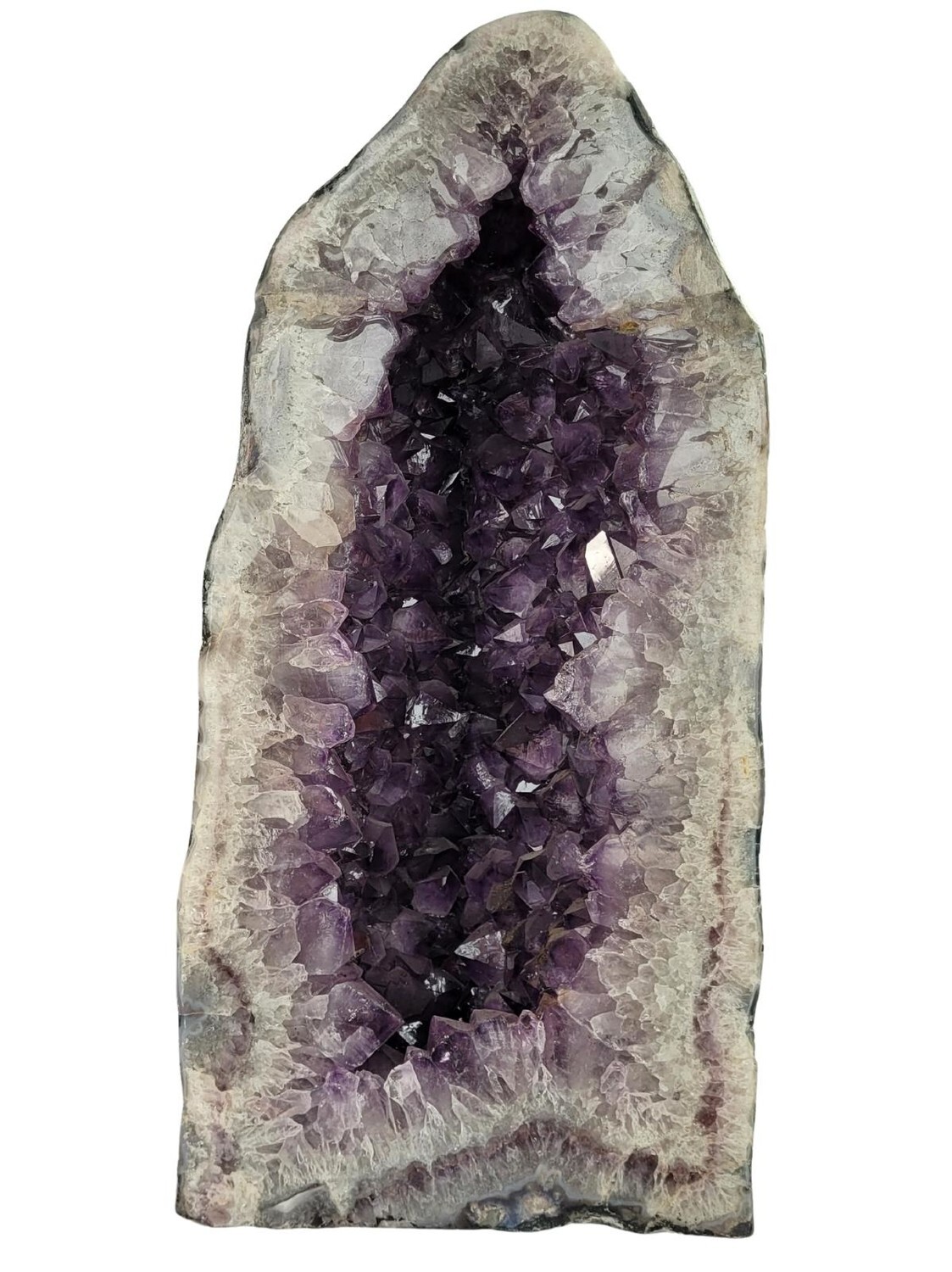 [DESCRIPTION] Pierre de la sagesse, l'améthyste dissipe les peurs et apporte de la sérénité. Sous forme de géode et placée dans une pièce de votre maison, elle permet de purifier votre intérieur des énergies négatives tout en diffusant son énergie positive. Grâce à son grand format, elle est également une pierre de rechargement puissante dans laquelle il est possible de placer n'importe quelle pierre pendant quelques heures pour que celle-ci se charge en énergie positive de la géode. En complément de ses bienfaits apaisants, la géode d'améthyste ouvre également l’imaginaire et développe la créativité et l'intuition. [CONSEILS D'UTILISATION] Du fait de son énergie purificatrice, il est conseillé de purifier et de recharger la géode d'améthyste de temps en temps pour la débarrasser des mauvaises énergies qu'elle pourrait accumuler et de lui redonner son plein potentiel. Pour cela, il suffit de faire circuler à l'intérieur de la géode un bâton de sauge ou de palo santo fumant. Une fois purifiée, il faut alors la recharger en la plaçant sous la lumière de la pleine lune afin qu'elle retrouve toute son énergie positive. [PRÉCAUTIONS D'EMPLOI] L'améthyste étant une pierre lunaire, il est déconseillé de la placer dans un endroit avec un contact direct avec la lumière du soleil afin de ne pas altérer sa couleur naturelle.