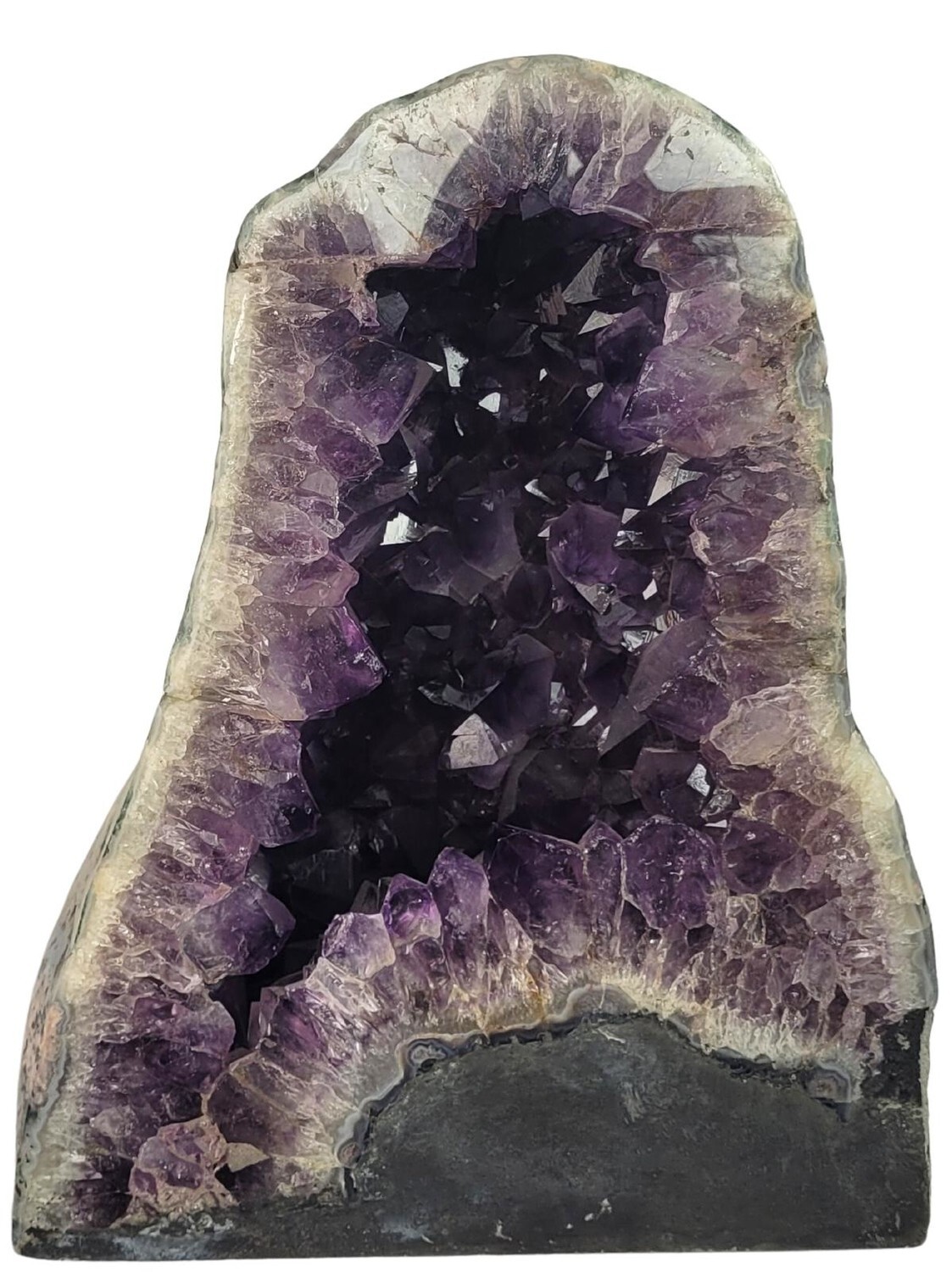 [DESCRIPTION] Pierre de la sagesse, l'améthyste dissipe les peurs et apporte de la sérénité. Sous forme de géode et placée dans une pièce de votre maison, elle permet de purifier votre intérieur des énergies négatives tout en diffusant son énergie positive. Grâce à son grand format, elle est également une pierre de rechargement puissante dans laquelle il est possible de placer n'importe quelle pierre pendant quelques heures pour que celle-ci se charge en énergie positive de la géode. En complément de ses bienfaits apaisants, la géode d'améthyste ouvre également l’imaginaire et développe la créativité et l'intuition. [CONSEILS D'UTILISATION] Du fait de son énergie purificatrice, il est conseillé de purifier et de recharger la géode d'améthyste de temps en temps pour la débarrasser des mauvaises énergies qu'elle pourrait accumuler et de lui redonner son plein potentiel. Pour cela, il suffit de faire circuler à l'intérieur de la géode un bâton de sauge ou de palo santo fumant. Une fois purifiée, il faut alors la recharger en la plaçant sous la lumière de la pleine lune afin qu'elle retrouve toute son énergie positive. [PRÉCAUTIONS D'EMPLOI] L'améthyste étant une pierre lunaire, il est déconseillé de la placer dans un endroit avec un contact direct avec la lumière du soleil afin de ne pas altérer sa couleur naturelle.