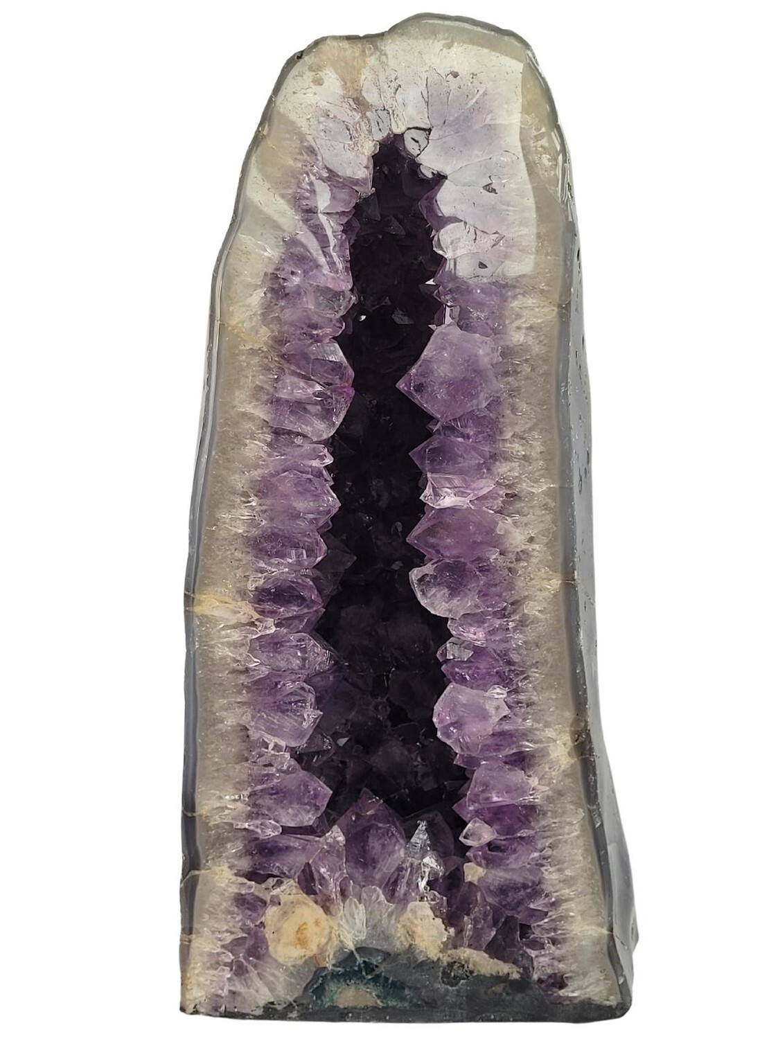 [DESCRIPTION] Pierre de la sagesse, l'améthyste dissipe les peurs et apporte de la sérénité. Sous forme de géode et placée dans une pièce de votre maison, elle permet de purifier votre intérieur des énergies négatives tout en diffusant son énergie positive. Grâce à son grand format, elle est également une pierre de rechargement puissante dans laquelle il est possible de placer n'importe quelle pierre pendant quelques heures pour que celle-ci se charge en énergie positive de la géode. En complément de ses bienfaits apaisants, la géode d'améthyste ouvre également l’imaginaire et développe la créativité et l'intuition. [CONSEILS D'UTILISATION] Du fait de son énergie purificatrice, il est conseillé de purifier et de recharger la géode d'améthyste de temps en temps pour la débarrasser des mauvaises énergies qu'elle pourrait accumuler et de lui redonner son plein potentiel. Pour cela, il suffit de faire circuler à l'intérieur de la géode un bâton de sauge ou de palo santo fumant. Une fois purifiée, il faut alors la recharger en la plaçant sous la lumière de la pleine lune afin qu'elle retrouve toute son énergie positive. [PRÉCAUTIONS D'EMPLOI] L'améthyste étant une pierre lunaire, il est déconseillé de la placer dans un endroit avec un contact direct avec la lumière du soleil afin de ne pas altérer sa couleur naturelle.
