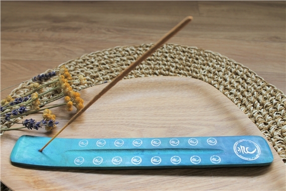 Porte-encens pour bâton en bois de manguier chakra de la gorge CHAKRA & LUCK [DESCRIPTION] Porte-encens en bois de couleur bleue foncée adapté aux bâtons d'encens. Ce porte-encens représente le chakra de la gorge (Vishuddha) qui correspond à l'introspection, l'équilibre et la clairvoyance. [CARACTÉRISTIQUES] Porte-encens en bois de manguier bleu foncé. Dimensions : 26 x 3,5 cm. Fabriqué en Inde. [CONSEILS D'UTILISATION] Allumer l'extrémité de l'encens jusqu'à ce qu'elle s'enflamme. Lorsqu'elle est incandescente, souffler dessus délicatement pour éteindre la flamme. Placer le bâton d'encens sur son porte-encens. [PACKAGING] Fourreau carton imprimé brochable