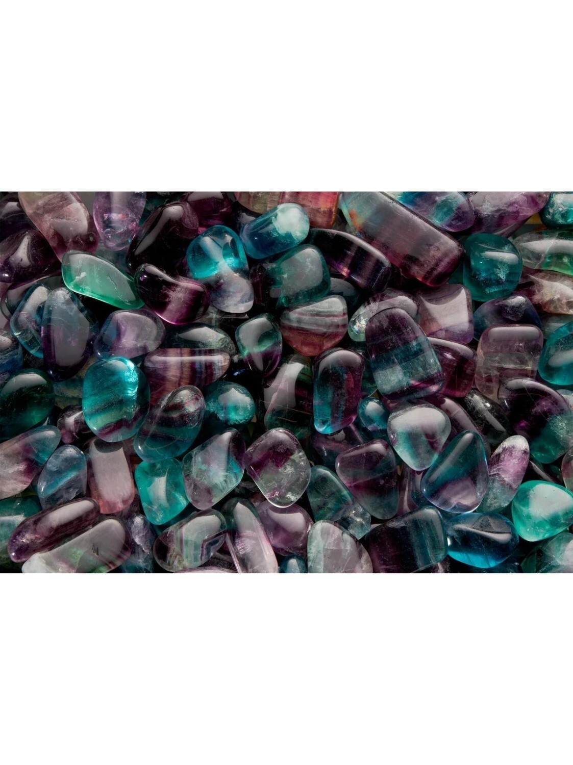 Pierres roulées de Fluorite Arc-en-ciel en sachet de 500 g [DESCRIPTION] La fluorite apporte un meilleur discernement et une stabilité émotionnelle. Elle aide en cas de difficultés d'apprentissage, elle facilite la concentration, développe l'esprit d'analyse et la mémoire. [CARACTÉRISTIQUES] Sachet de 500 g d'environ 30 à 50 pierres. Taille L.