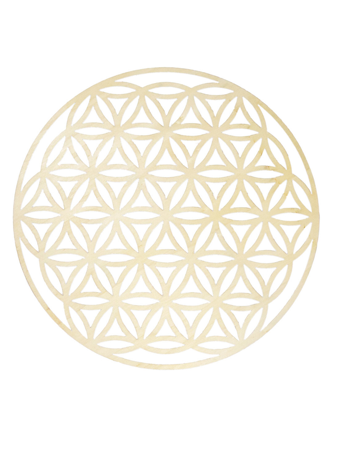 Socle de rechargement en bois Fleur de vie ajourée 30 cm [DESCRIPTION] Symbole universel issu de la géométrie sacrée, la Fleur de Vie est formée d'une grille de fleurs à 6 pétales qui se superposent et s’entrecroisent et pouvant être répétées l'infini. Son motif apaisant contiendrait les motifs géométriques à l’origine de la création de toutes choses. Grâce à sa haute force vibratoire, elle possède de nombreux bienfaits. En plus d'harmoniser votre intérieur, ce socle en fleur de vie vous permettra de purifier et de recharger vos pierres ou vos bijoux en pierres naturelles. [CARACTÉRISTIQUES] Socle de rechargement en bois contreplaqué. Motif Fleur de Vie. Diamètre 30 cm. Epaisseur 3 mm. [CONSEILS D'UTILISATION] La Fleur de Vie se regénère en permanence et n'a donc pas besoin d'être nettoyée et rechargée. Pour nettoyer et recharger vos pierres, placez-les sur la Fleur de Vie pendant quelques heures. Pour harmoniser un lieu, placez la Fleur de Vie dans la pièce que vous souhaitez rééquilibrer. Enfin, vous pouvez également revitaliser votre boisson en plaçant le socle sous votre verre ou votre carafe. [PACKAGING] Sachet plastique