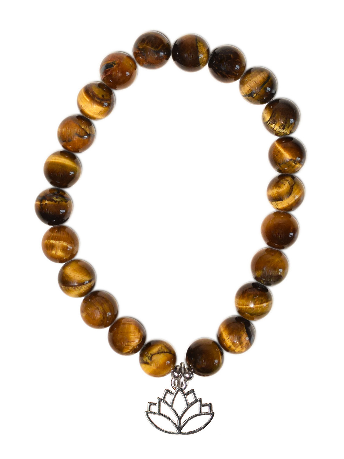 Bracelet Oeil de tigre perles rondes 8 mm et breloque Lotus