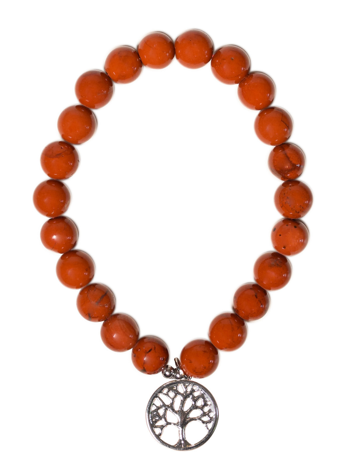 Bracelet Jaspe rouge perles rondes 8 mm et breloque Arbre de vie