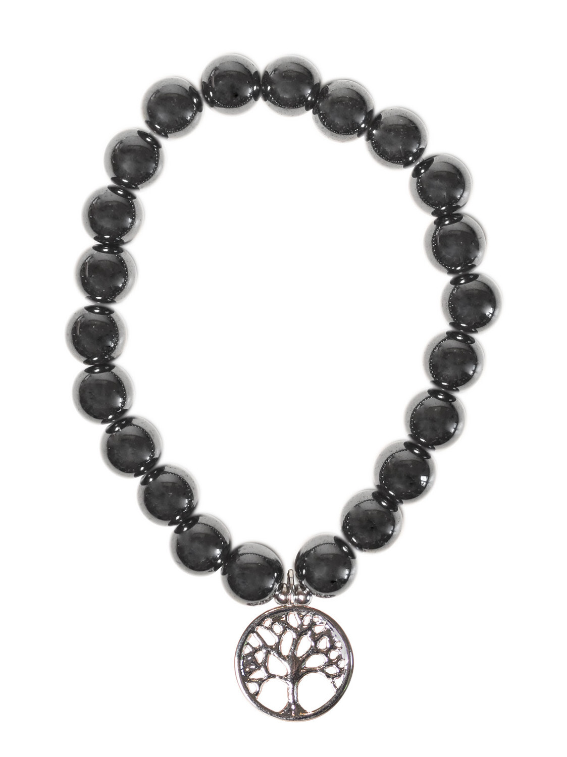 Bracelet Hématite perles rondes 8 mm et breloque Arbre de vie