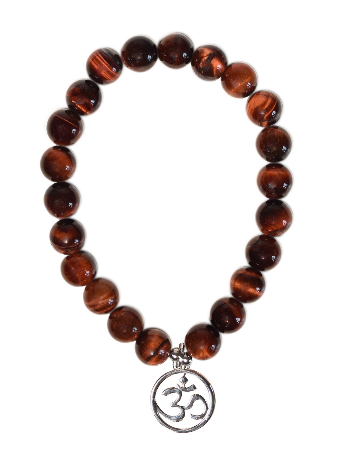 Bracelet Oeil de taureau perles rondes 8 mm et breloque Om