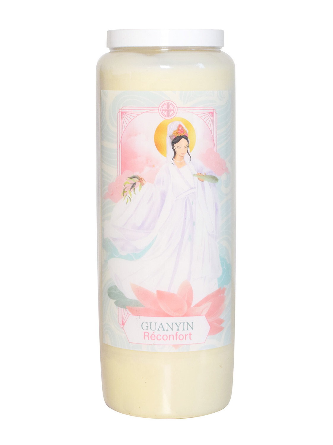 Neuvaine des Déesses du Monde Guanyin [DESCRIPTION] Découvrez le mythe de GUANYIN, déesse majeure du panthéon chinois. Sauvée de la mort par un nuage qui l'a emmenée au ciel, Guanyin, dont le nom signifie « celle qui entend les lamentations du monde », est la déesse de la compassion. Porteuse d'un vase d'eau curative, elle est liée à l'élément eau. Douce et apaisante, elle a pour mission de soulager tous les maux et d'aider les humains à atteindre l'illumination. Emblème de la bonté, elle incarne la pureté, l'être éveillé, la douceur, l'indulgence, le pardon, la miséricorde et la consolation. Originaire d'Inde sous une forme masculine, Guanyin est une divinité incontournable dans toute l'Asie. Vénérée en Chine, son culte est également célébré au Japon, au Tibet et même en Mongolie. Cette neuvaine sera utile à ceux qui ont besoin de réconfort et de sérénité, de se reconnecter à l'énergie du cœur, de guérir des blessures émotionnelles et d'arriver à pardonner. Entrez dans le monde de Guanyin, recevez l'énergie de celle qui console et exauce les prières en vous reconnectant au Féminin Sacré de La Sainte. [CARACTÉRISTIQUES] Bougie en cire 100g végétale. Copyright DG Diffusion – Catherine Sorolla Menassieu. [PACKAGING] Neuvaine en plastique avec étiquette adhésive imprimée avec un blanc de soutien.