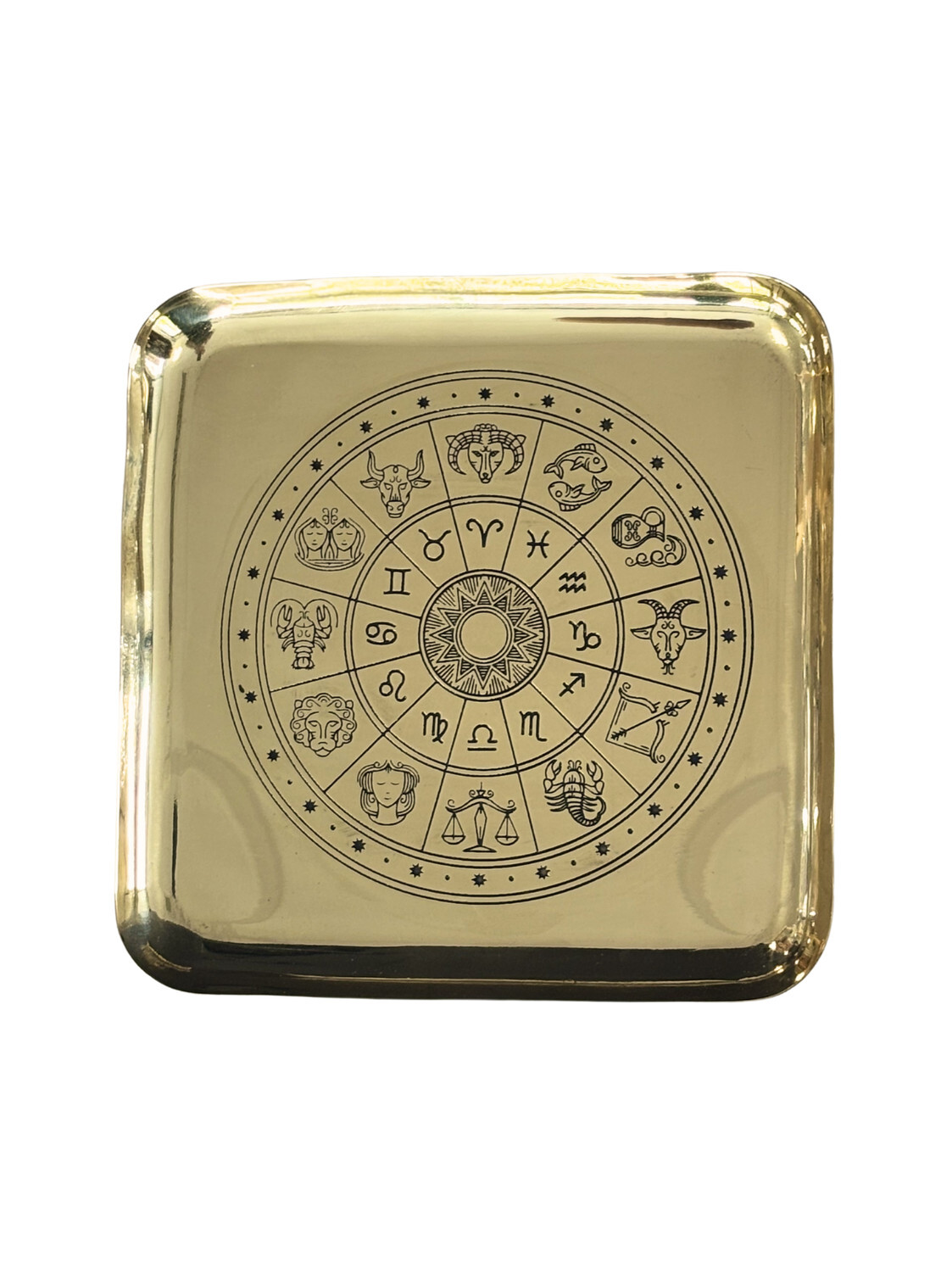 Plateau en laiton Zodiaque [DESCRIPTION] Découvrez ce plateau en laiton orné de la roue du zodiaque finement gravée. Idéal pour ajouter une dimension astrologique à votre espace, il vous permet également de ranger vos pierres naturelles, bijoux ou petits objets précieux. [CARACTÉRISTIQUES] Plateau en laiton. Dimension : environ 16.1 x 16.1 x 1.4cm. [CONSEILS D'UTILISATION] Utilisez-le pour disposer vos cristaux ou objets décoratifs. [PACKAGING] Plateau protégé dans un sachet plastique et dans un carton de protection. Produit à déballer pour exposer en magasin.Brule-encens protégé dans un sachet plastique et dans un carton de protection. Produit à déballer pour exposer en magasin. [PRÉCAUTIONS D'EMPLOI] Nettoyez le plateau avec un chiffon doux pour préserver son éclat.