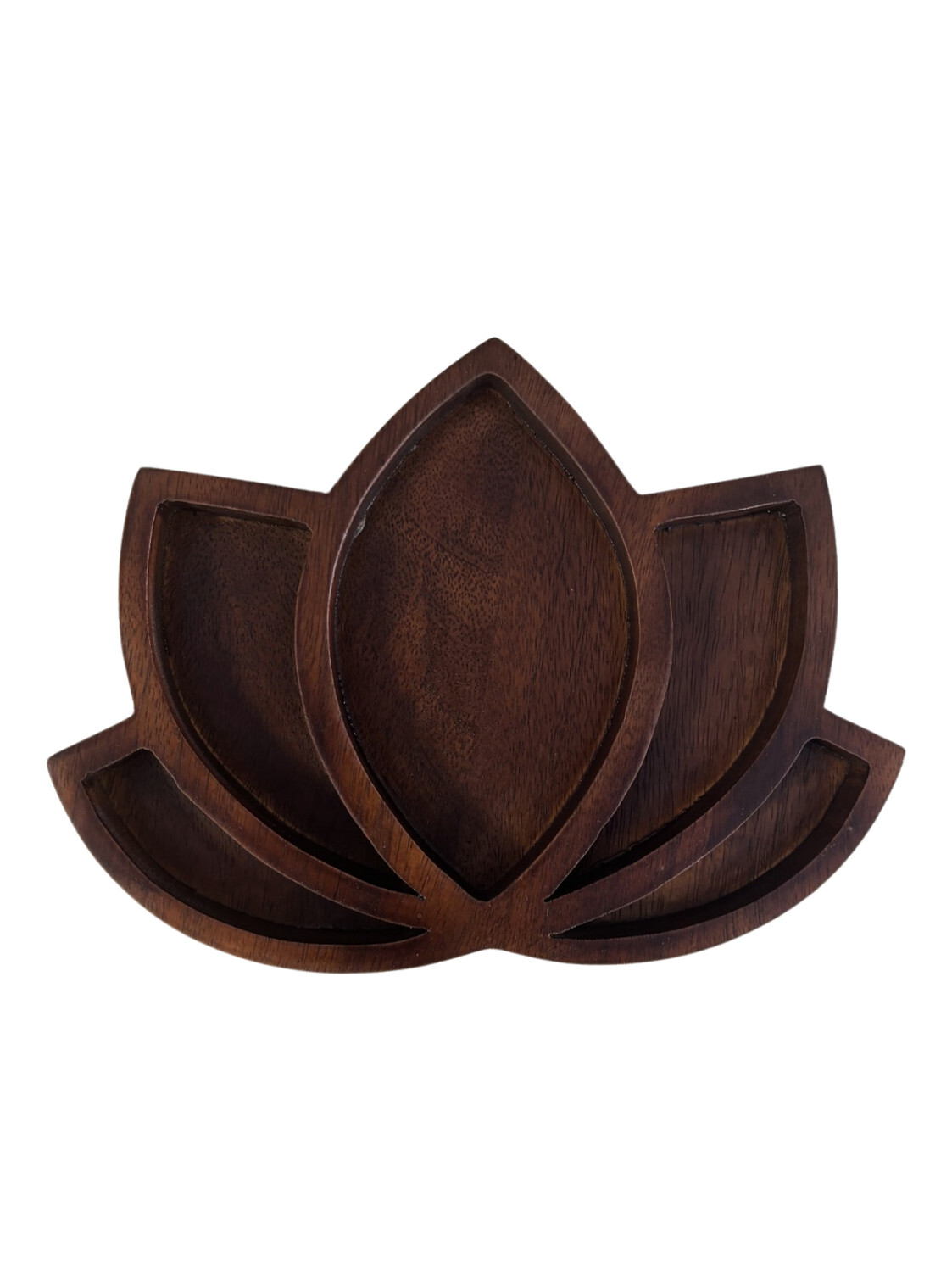 Support en bois Lotus - Naturel [DESCRIPTION] Apportez une touche de sérénité à votre espace avec ce support en bois en forme de lotus. Évoquant la fleur de lotus, symbole de pureté et d'illumination, il est idéal pour mettre en valeur vos bijoux, pierres naturelles ou autres objets précieux. [CARACTÉRISTIQUES] Support en bois. Dimensions : 23.2 x 16.8 x 2.6cm. [CONSEILS D'UTILISATION] Utilisez-le pour maintenir vos objets tels que des bijoux ou pierres naturelles. [PACKAGING] Support protégé dans un sachet plastique et dans un carton de protection. Produit à déballer pour exposer en magasin. [PRÉCAUTIONS D'EMPLOI] Nettoyez avec un chiffon doux pour préserver l'apparence du bois.