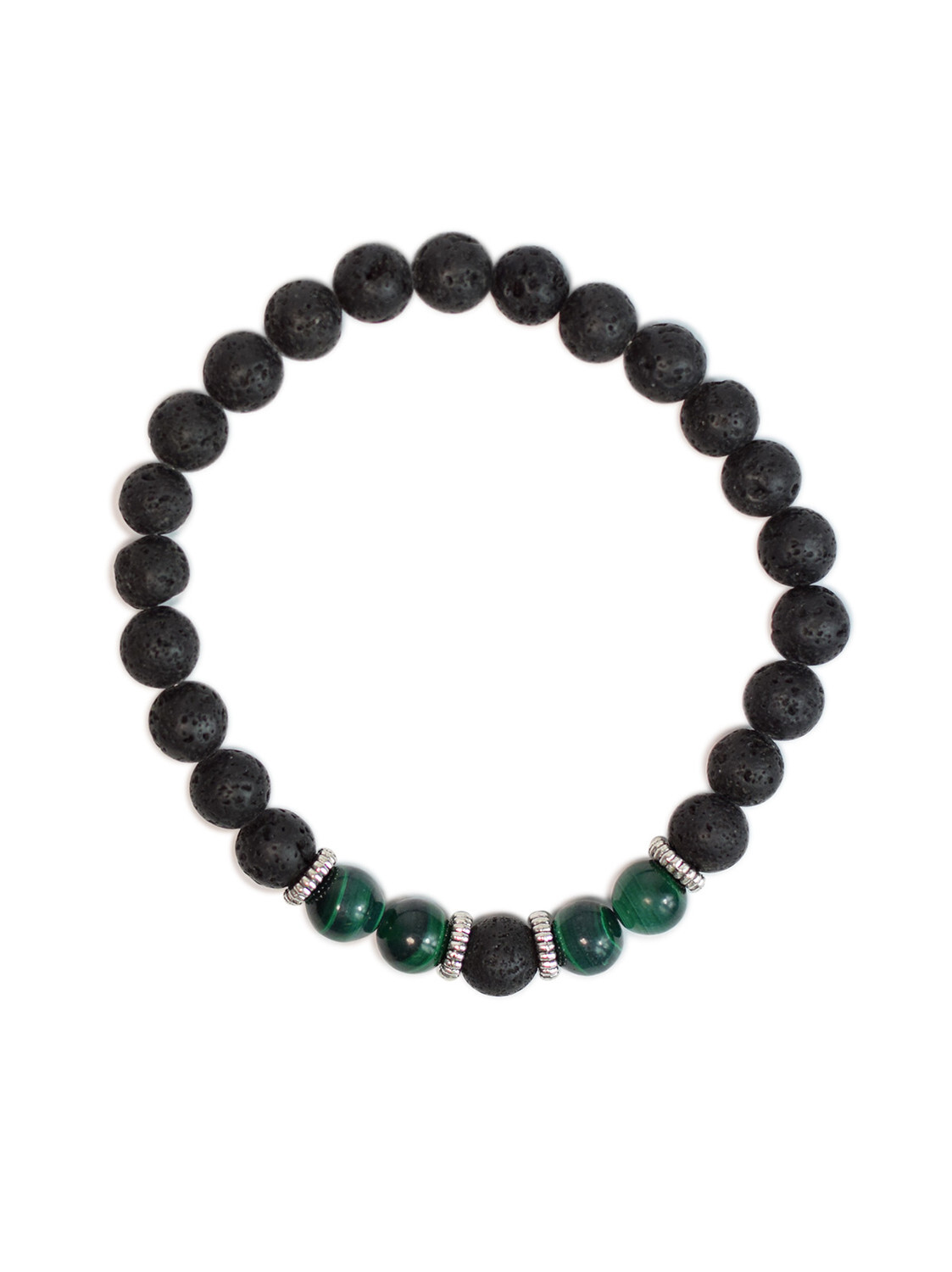Bracelet perles rondes Malachite et Pierre de lave