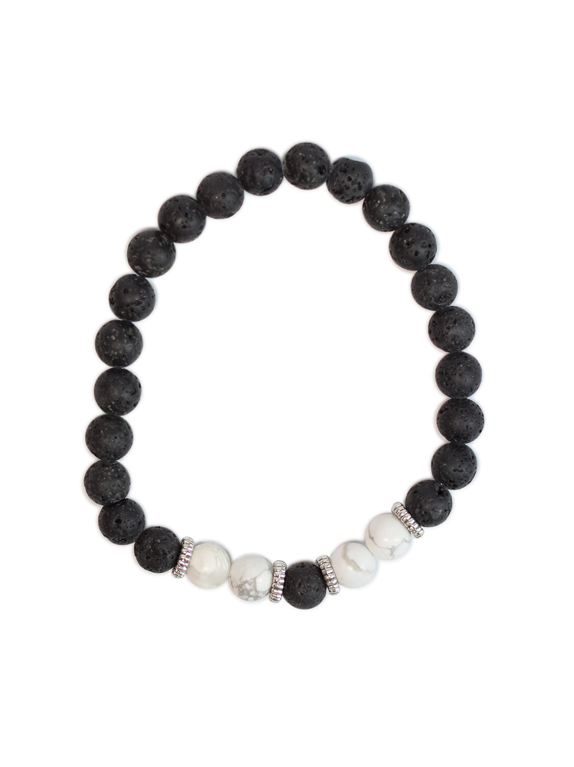 Bracelet perles rondes Magnésite et Pierre de lave