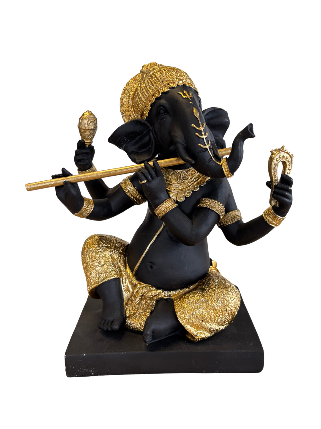 Statuette Ganesh avec Bansuri 22 cm - Résine - Doré