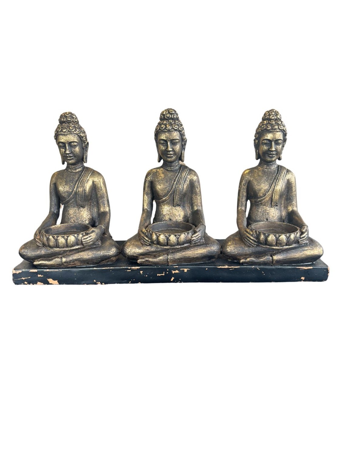 Trio porte-bougies Bouddha Assis 33,5 cm - Résine