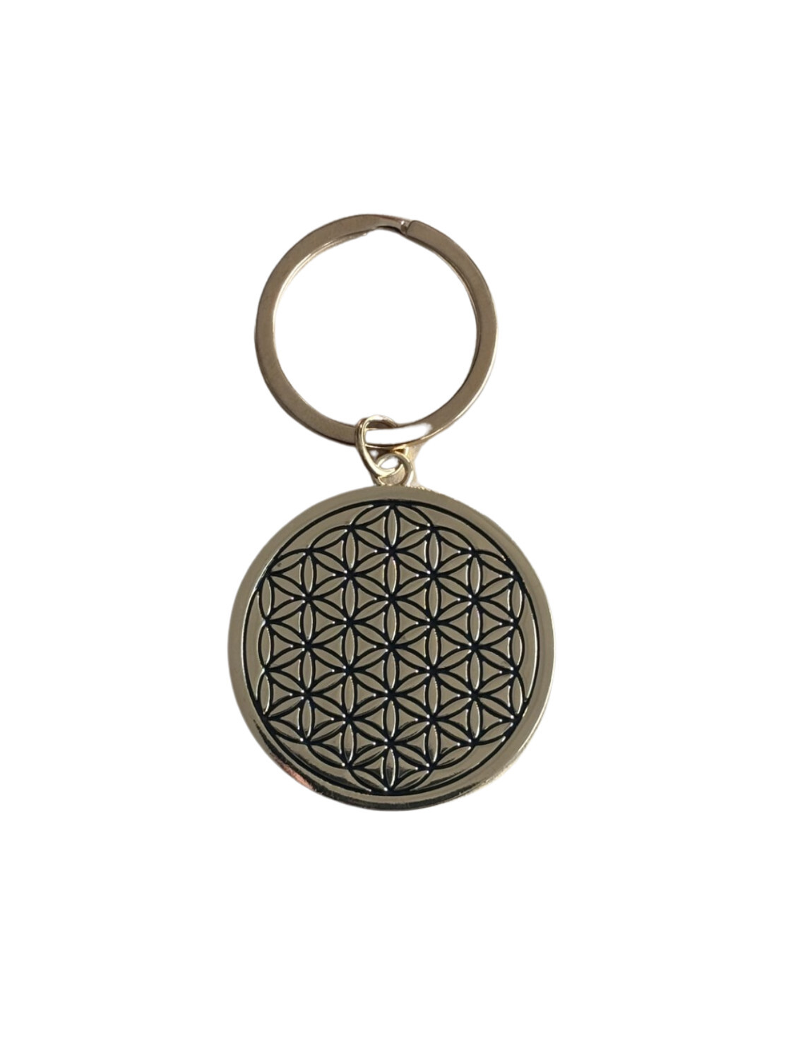 Porte-clef métal doré Fleur de vie [DESCRIPTION] Symbole ancestral de la géométrie sacrée, la Fleur de Vie incarne l’harmonie, la connexion et l’énergie universelle. Gravé sur ce porte-clés en métal doré, ce motif puissant évoque l’équilibre et le renouvellement constant de la vie. À la fois élégant et chargé de sens, cet accessoire vous accompagnera au quotidien, accroché à votre sac ou à vos clés. [CARACTÉRISTIQUES] Porte-clef en métal doré. [PACKAGING] étiquette accrochée au produit avec un fil et étiquette adhésive collée sur le sachet plastique de transport