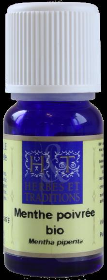 Nom botanique : Mentha X piperita - Famille : Lamiacées - Origine : Europe ou Inde - Partie distillée : Sommités fleuries - Mode d'obtention : Distillation à la vapeur d'eau et à basse pression - Mode de culture : Biologique - Qualité : Huile essentielle 100% pure et naturelle. Propriétés : Vasoconstricteur / Antalgique, anesthésiant / Anti-inflammatoire notamment au niveau intestinal et urinaire / Tonique hépato-pancréatique / Tonique et équilibrant du système nerveux / Action oestrogène-like, emménagogue / Anti-infectieux : virucide, bactéricide, fongicide. Indications : Maladies virales : zona, hépatites, colites / Cystites / Nausées, mal des transports, indigestion / Problèmes veineux / Asthénie / Douleurs améliorées par le froid : migraine, traumatisme, inflammation, prurit / Chaleur intense, suées, gonflements. Contre-indications : Grossesse, allaitement, enfants de moins de 6 ans, sujets épileptiques. Modes d'utilisation : A respirer : 3 à 5 minutes à renouveler plusieurs fois par jour selon les besoins. En diffusion : dans l'atmosphère avec un diffuseur d'huiles essentielles (séances de 10 à 20 minutes par demi-journée). En externe : En massage, à diluer jusqu'à 5% dans une huile végétale bio ou dans l'huile de massage base neutre. Ne jamais masser de surface étendue, rester à l'usage localisé. Pas d'utilisation dans le bain. En interne : 1 goutte en dilution dans 15 gouttes de Solubol puis compléter par une boisson, ou 1 à 2 gouttes dans une matière grasse pour l'associer à un met culinaire.