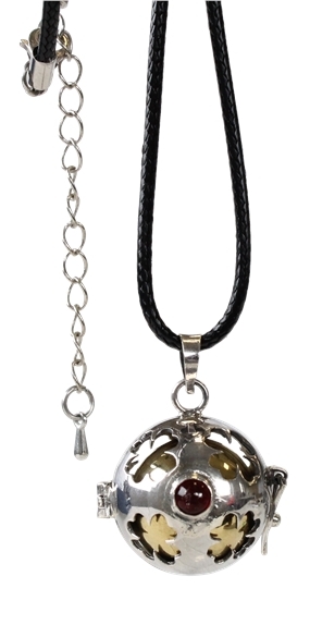 Bayi Bola est à la fois une marque et un produit. Cette « boule pour bébé » se présente comme un bijou et se porte contre le ventre de la maman pendant la grossesse. Le son qu'il émet est perçu par bébé et le rassurera encore après sa naissance... Bayi Bola est la rencontre de deux mondes, « Bayi » signifiant bébé en Indonésien et « Bola » étant la traduction de boule en espagnol. Bayi Bola symbolise aussi la rencontre entre une pratique traditionnelle (ce pendentif est porté par les femmes enceintes en Indonésie et au Mexique) et l'importance accordée par les mamans modernes à la vie intra-utérine de leur bébé à naître. Pendentif en argent 925/1000. Diamètre : 2 cm. Livré avec un cordon cuir noir de 120 cm et une chaîne argentée de 120 cm à porter selon vos envies...