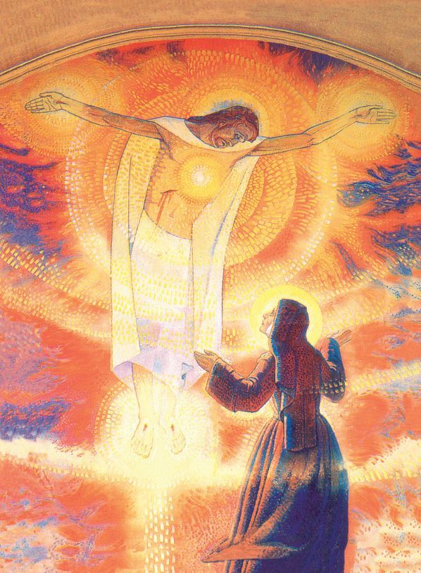 Jésus montre à Ste Marguerite Marie ses cinq plaies brillantes comme un soleil