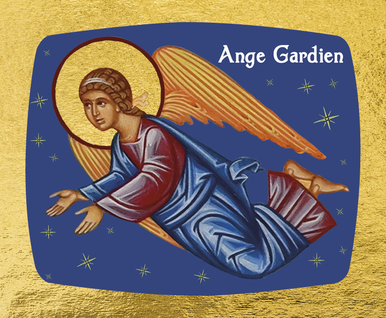 Eclatant de lumières, l'ange gardien se tourne vers nous avec de merveilleux gestes de sollicitude. Il jaillit de la nuit bleue étoilée, qui symbolise que l'ange veille toujours à nos côtés. Cette icône est porteuse d'un message joyeux et réconfortant. Elle a été magnifiquement "écrite" par notre iconographe, Mme Elisabeth Patier-Théréau. Elle fera un cadeau de valeur pour un enfant comme pour un adulte.