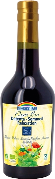 Détente, Sommeil, Relaxation aux 9 fleurs relaxantes. Cet Elixir est élaboré à partir de fleurs délicatement choisies et agissant en synergie, pour favoriser la relaxation : La Passiflore est traditionnellement utilisée pour calmer les angoisses. L’Aubépine, régulateur cardiaque, et la Lavande reconnue pour ses vertus sédatives et apaisantes, favorisent le retour au sommeil réparateur. Le Houblon et le Coquelicot sont également d’excellents sédatifs nerveux qui permettent l’apaisement des tensions. La Mélisse, calme et harmonise la digestion difficile liée au stress. La Sauge, excellent régulateur hormonal, agit sur les troubles de la ménopause et aide à trouver un nouvel équilibre naturel. Idéal pour vivre et dormir à nouveau tranquillement en paix.