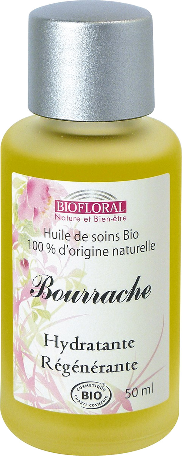 Les huiles de soins sont issues par première pression à froid de graines, de noix ou macérât huileux de fleurs provenant de l’agriculture biologique pour préserver le maximum de leurs bienfaits. Chaque huile a ses propres caractéristiques : adoucissantes, nourrissantes, revitalisantes pour répondre aux différents besoins de votre peau. Elles sont riches en vitamines pour protéger la peau des agressions extérieures, prévenir ou lutter contre son vieillissement et son dessèchement. Elles sont également un support idéal à nos huiles essentielles pour l’application cutanée. Huile de Bourrache - L’huile de bourrache est une des rares huiles végétales à contenir le très précieux acide gamma-linoléique (dérivé d’acide gras essentiel) très efficace contre le vieillissement cutané. Reconnue pour ses propriétés revitalisantes et nourrissantes, elle convient particulièrement aux peaux sèches, fatiguées et dévitalisées. Elle redonne aux tissus élasticité, souplesse et tonicité. Incroyable soin régénérant, elle donne un véritable éclat de jeunesse à la peau. Apporte soulagement lors des délicates périodes menstruelles et des manifestations de la ménopause.