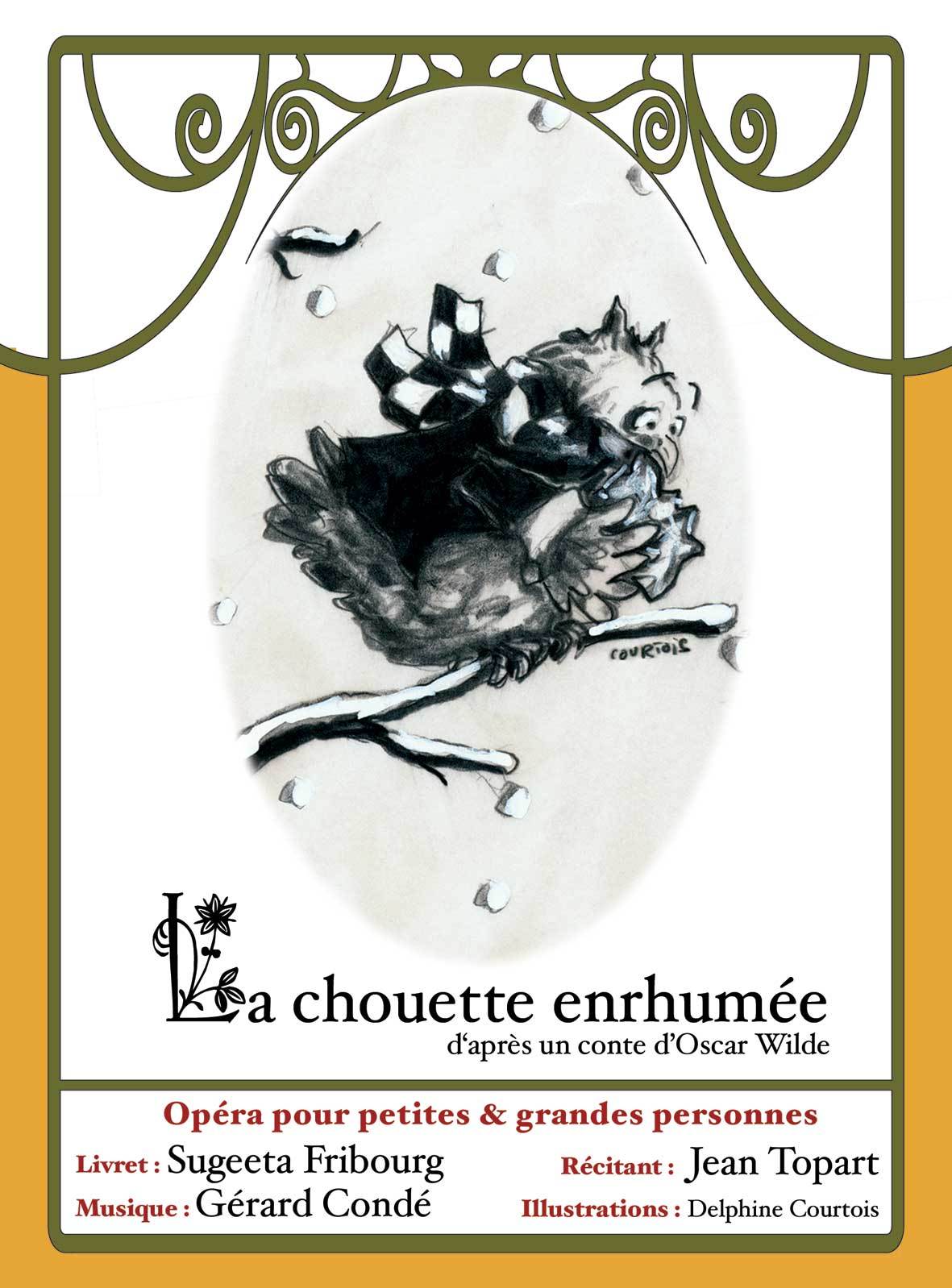« La chouette enrhumée » d’Oscar Wilde, raconté par Jean Topart. Coup de cœur Charles Cros. Opéra pour petites et grandes personnes de Gérard Condé. Triptyque Livret 36 pages durée : 54 mn. Le classique de l’opéra pour enfants, chef d’œuvre de poésie et d’humour enfin disponible dans une nouvelle édition. Imaginez le plus beau des jardins… doucement, vous décidez d’y pénétrer. Mais alors que vous contemplez ses mille merveilles, une main épaisse s’abat sur votre épaule ! Vous êtes grondé, et puis chassé, les fesses bottées, les oreilles presque arrachées. A partir de demain, un large mur défendra le jardin. Et nul ne s’avisera plus d’y entrer ! Seulement l’été et le printemps sont saisons timides, elles aussi resteront dehors. Sept années passent, de froid et de tristesse. Jusqu’à ce nouveau matin… Illustrations : Delphine Courtois Livret : Sugeeta Fribourg Direction artistique : Olivier Cohen Direction technique : Jean-Claude Koskas