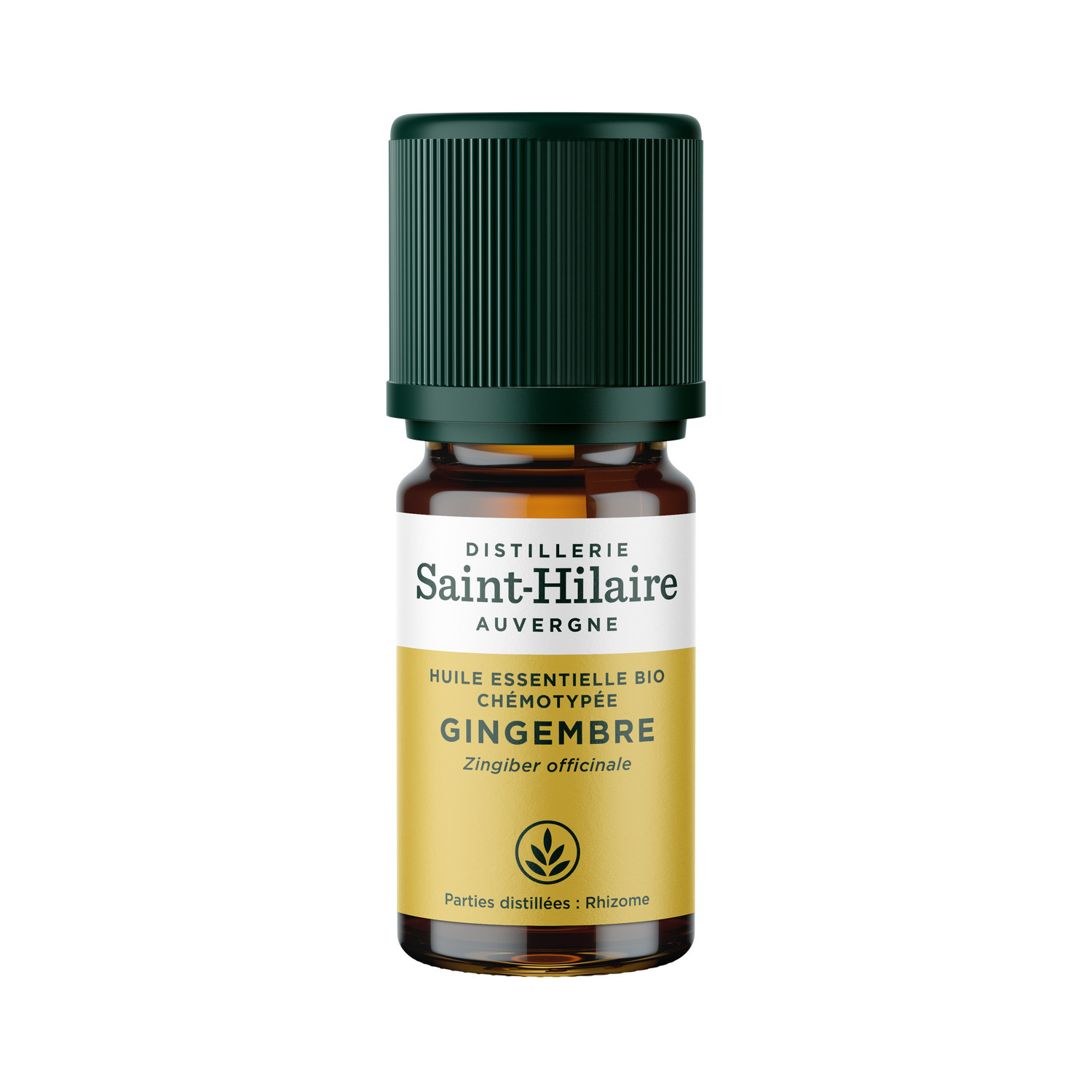 '- Huile essentielle De Saint Hilaire Gingembre BIO 5 ml [DESCRIPTION] Huile essentielle 100% pure issue de l'agriculture biologique. La distillerie De Saint Hilaire a mis au point un procédé de distillation unique offrant à ses huiles essentielles une exceptionnelle qualité. Cette distillation à la fois douce, lente et complète des plantes aromatiques est réalisée uniquement à la vapeur d'eau et permet d'obtenir "le totum" de l'huile essentielle sans dénaturer la plante par une chaleur excessive tout en préservant l'intégrité de tous ces composants. [CONSEILS D'UTILISATION] Adapté à un usage cutané, en diffusion ou inhalation. Diluer avant utilisation. [PACKAGING] Flacon avec étiquette imprimée. [PRÉCAUTIONS D'EMPLOI] Verser 10 gouttes maximum par kg d'aliments. Non soluble dans l'eau. Ne pas laisser à la portée des enfants. Ne pas utiliser chez la femme enceinte ou allaitante. Ne pas consommer pur. Ne pas dépasser 3 gouttes par jour et par personne. Produit issu de l'agriculture biologique, certifié par Ecocert France SAS FR-BIO-01.