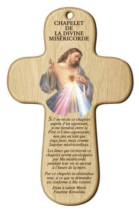 Croix bois imprimée Divine Miséricorde