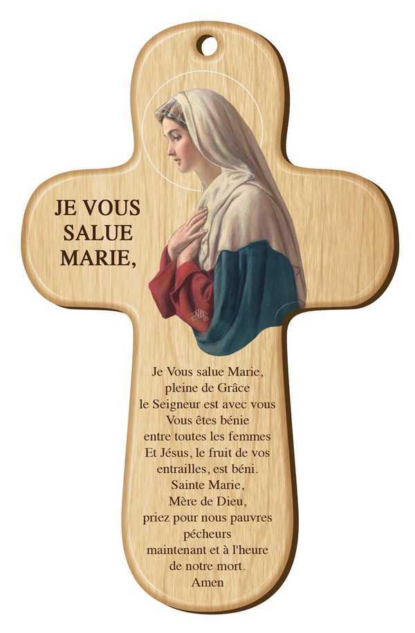 Croix bois imprimée Je vous salue Marie