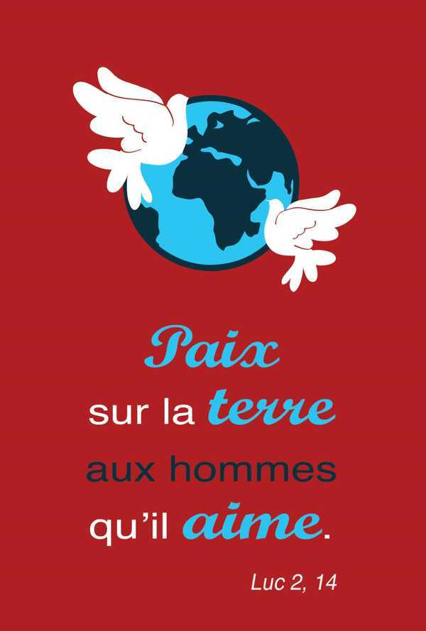 Pack de 10 cartes doubles Paix sur terre aux hommes qu'il aime. Lc 2,14. Avec enveloppes.