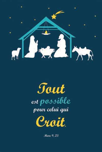 Carte Double Noël vendue par lot de 10 exemplaires. Tout est possible pour celui qui croit.