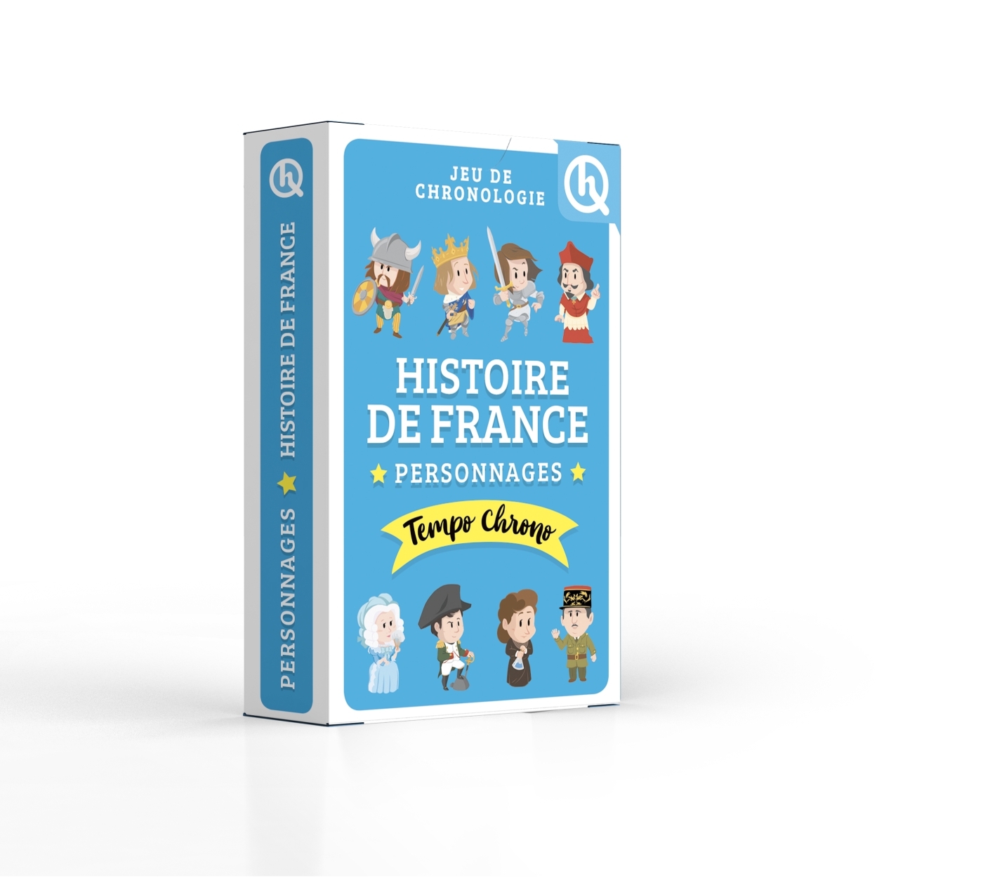 Tempo Chrono Personnages Histoire de France est un jeu de mémoire idéal pour découvrir les grandes personnalités qui ont marqué l'histoire de la France. Chacun leur tour, les joueurs placent leurs cartes, révélent les dates et reconstituent ainsi une grande frise chronologique à mémoriser en s'amusant !Un jeu de carte pour toute la famille de 7 à 107 ans !