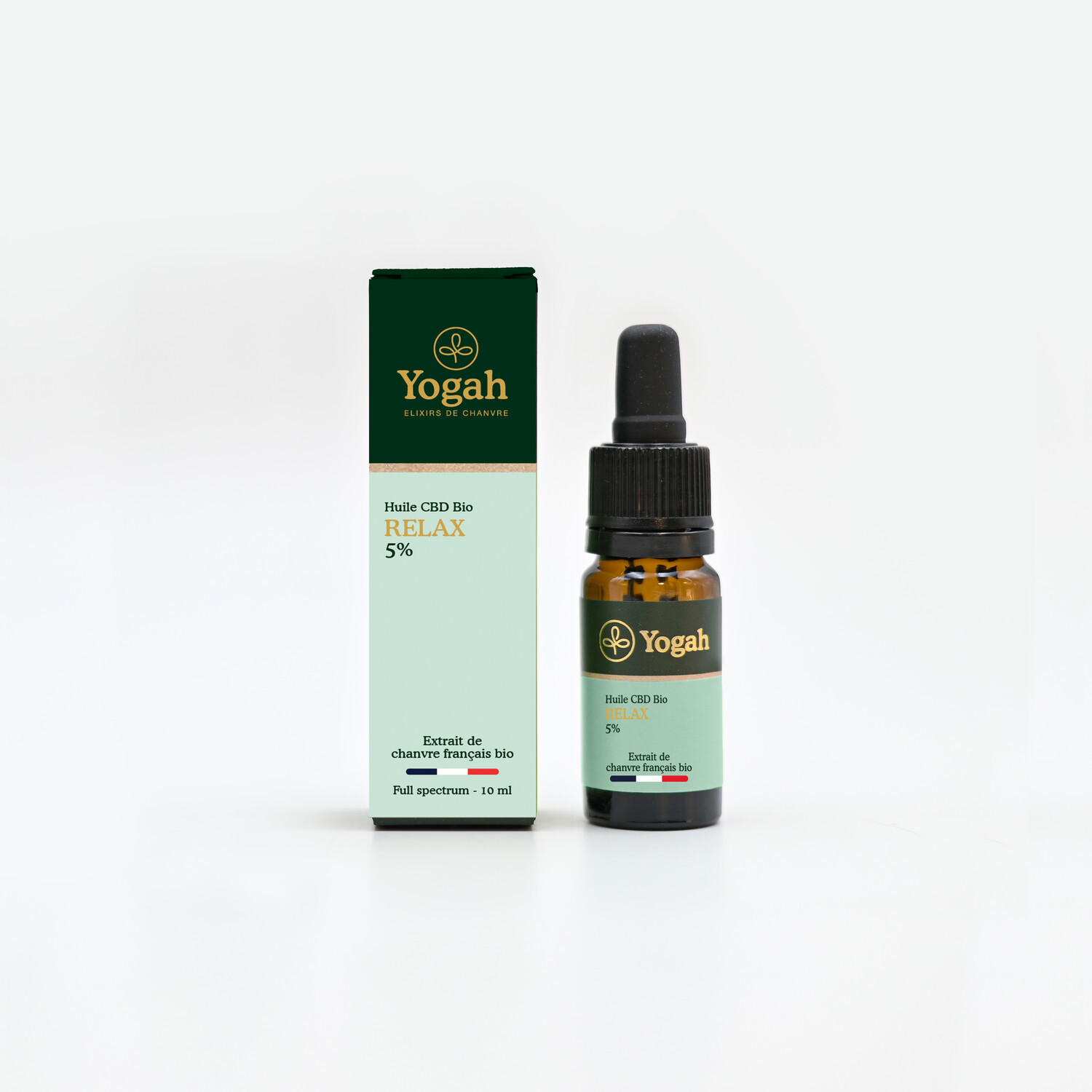 Huile au CBD 5% Relax Yogah [DESCRIPTION] L’huile CBD Relax 5% est un produit à base de cannabidiol et d’autres cannabinoïdes spécialement conçu pour lutter contre le stress chronique, le manque de concentration, l’anxiété… Véritable alliée détente, elle aide à retrouver un équilibre entre le corps et l’esprit au quotidien. L'huile CBD Relax est fabriquée à partir de chanvre bio français (des Landes et d’Ardèche) macéré à basse température dans une huile de sésame, afin de préserver les principes actifs de la plante et rendre l'huile encore plus efficace. Cette huile à spectre complet contient moins de 0,3% de THC. [CARACTÉRISTIQUES] Composition : huile bio de sésame torréfié, extrait naturel de chanvre français bio. Fabriqué en France. Contenance : 10 ml. [CONSEILS D'UTILISATION] Agiter avant emploi. Quelques gouttes sous la langue 1 à 2 fois par jour. Laisser agir 1 minute avant d'avaler. [PACKAGING] Boîte carton pliante. [PRÉCAUTIONS D'EMPLOI] Déconseillé aux femmes enceintes ou allaitantes et aux enfants.