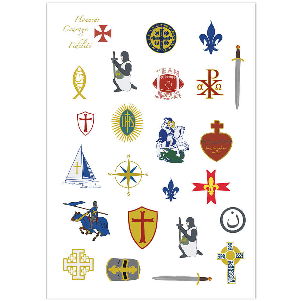Petit garçon batailleur? aventurier? ou plutôt spirituel? On en trouve pour tous les styles! Des tatouages éphémères qui permettent de rêver à des choses vraies et belles… Taille de la planche: 21X14,8cm Emballage: Film plastique refermable MODE D’EMPLOI 1- La peau doit être propre et sèche. 2- Choisir un motif, le découper. Puis retirer le film transparent. 3- Appliquer la face du motif fermement sur la peau. 4- Presser un linge mouillé ou une éponge sur le tatouage pour l’humidifier uniformément. 5- Patienter sagement pendant 20 secondes environ. 6- Retirer doucement le papier et laisser sécher le tatouage. Celui-ci restera quelques jours sur la peau et pourra être enlevé avec du savon ou du lait de toilette. RECOMMANDATIONS Ces tatouages ne s’utilisent pas sur des peaux sensibles et ne se posent jamais à proximité des yeux. Ne pas appliquer sur un enfant de moins de 3 ans. Fabriqué avec des encres non-toxiques et hypoallergéniques.