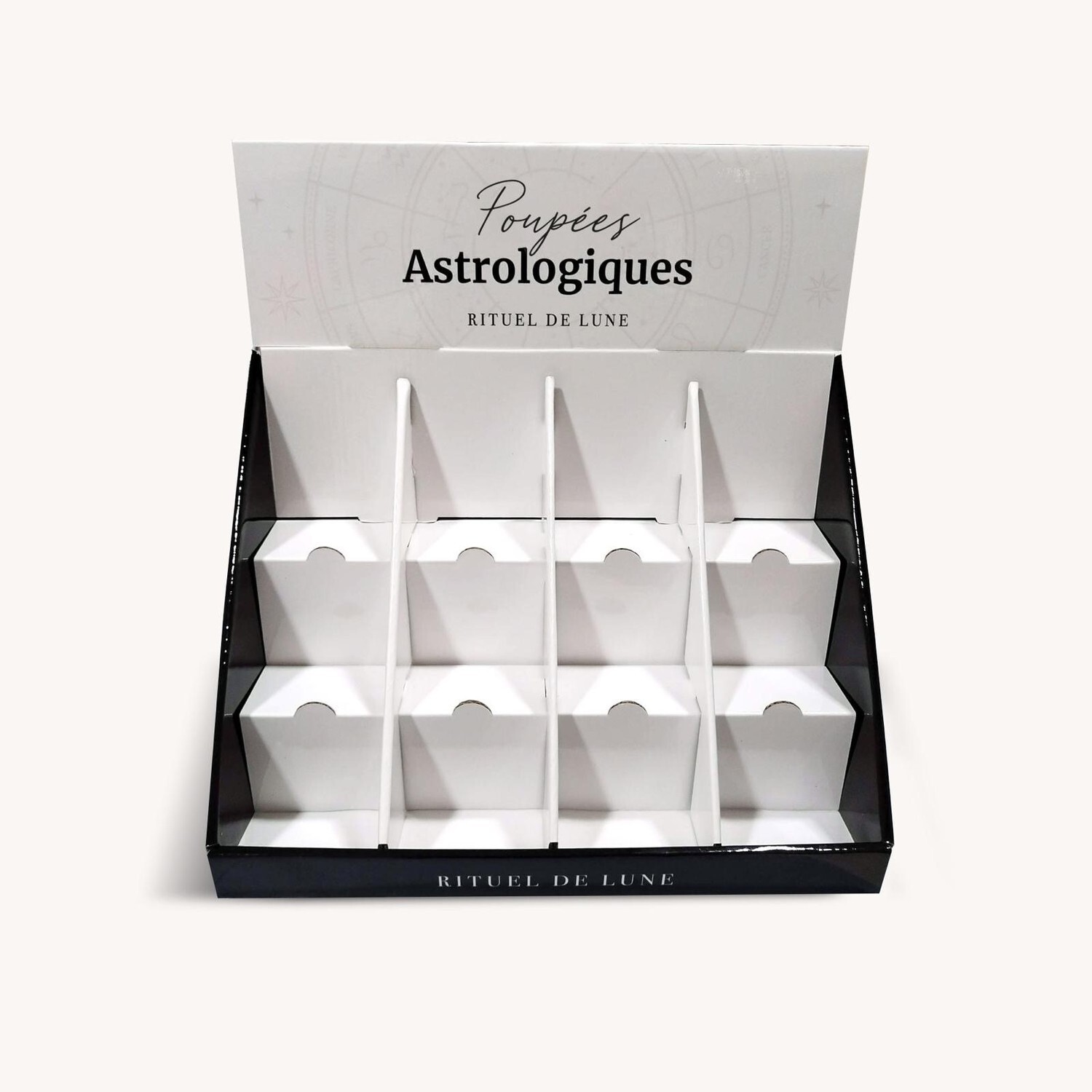 Présentoir vide pour Poupées Astrologiques Rituel de Lune [DESCRIPTION] Ce présentoir vide permet d'accueillir 6x 12 poupées astrologiques de la marque Rituel de Lune.