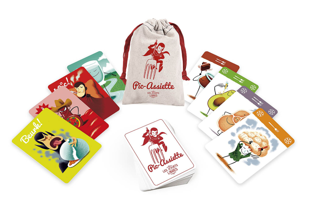 Un jeu de cartes pour s'amuser à composer des menus variés, de saison et toujours équilibrés... mais gare au Pic-Assiette ! L'objectif est d'être le premier à composer son menu avec un maximum de 7 fourchettes : entrée, plat, accompagnement, dessert et verre d'eau. Des cartes spéciales viennent ajouter du piment tout au long de la partie : Pic-Assiette, Cola, Beurk, Chantilly, Maladie, Anniversaire...