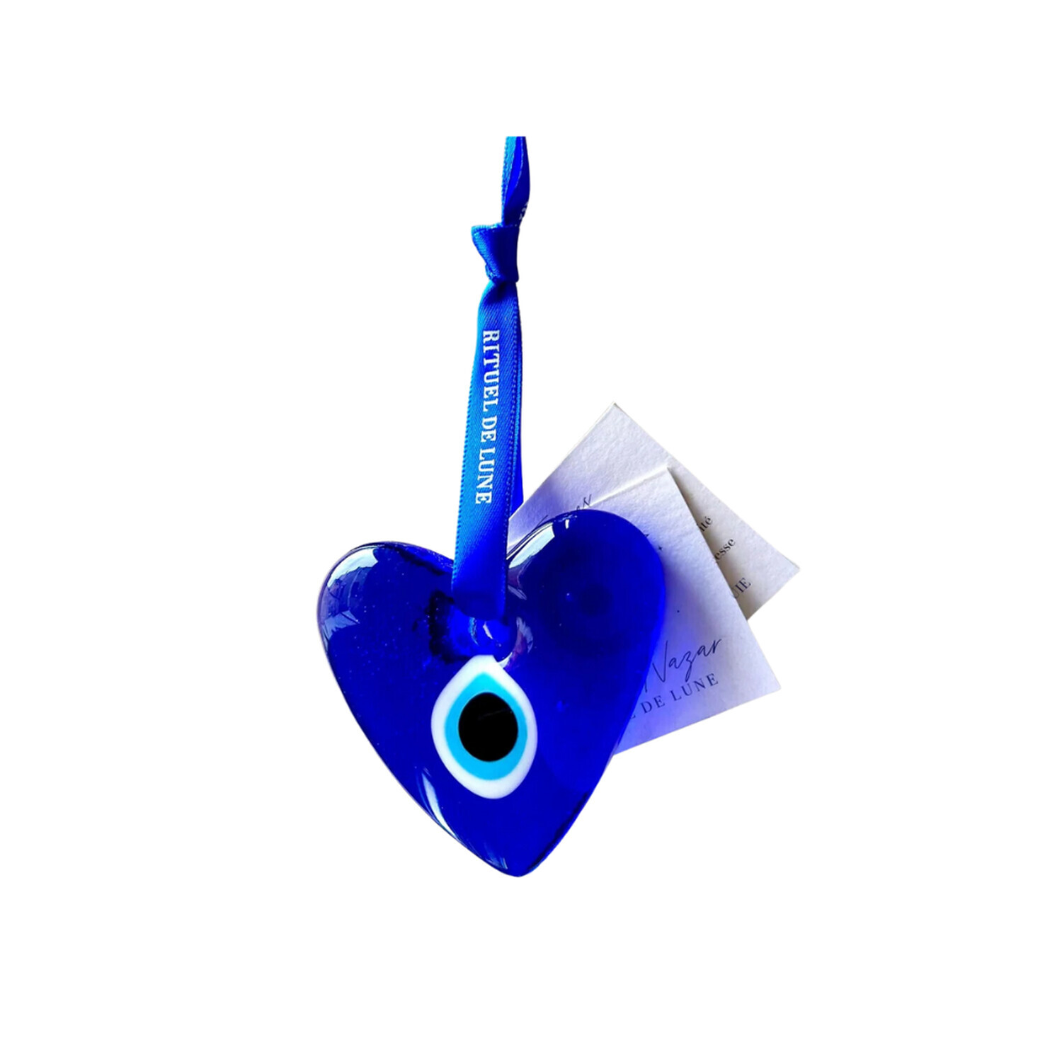 Coeur oeil de Nazar Rituel de Lune [DESCRIPTION] Oeil de Nazar : Amour, passion, émotion. Dans un monde où les énergies négatives et le mauvais œil peuvent parfois sembler omniprésents, il est essentiel de protéger ce qui compte le plus pour vous, que ce soit vous-même, votre famille ou vos proches. Tel un gardien vigilant, l'Œil Protecteur a la réputation d'éloigner les énergies négatives et de repousser les influences malveillantes, créant ainsi un bouclier invisible autour de vous. L'œil de Nazar, également connu sous le nom de l'œil bleu ou du mauvais œil, est un symbole de protection contre les influences négatives et le mauvais sort. Il absorbe les énergies négatives dirigées vers une personne et les détourne. Il est orné d'un ruban bleu en satin Rituel de lune. Le coeur signifie l'amour, la passion et l'émotion. [CARACTÉRISTIQUES] Oeil en verre en forme de coeur avec un satin bleu inscrit Rituel de Lune de 5x6cm [CONSEILS D'UTILISATION] Choisissez un endroit calme et tranquille où vous vous sentez à l'aise. Prenez l'œil de Nazar Rituel De Lune dans vos mains et prenez quelques instants pour vous centrer et vous détendre. Prenez quelques respirations profondes pour calmer votre esprit. Visualisez une lumière blanche et brillante qui émane de l'œil de Nazar. Imaginez cette lumière vous entourant et formant un bouclier protecteur autour de vous. Répétez une affirmation positive ou une prière qui est significative pour vous. Par exemple, vous pouvez dire : "Que cet œil de Nazar me protège du mauvais œil et des énergies négatives. Je suis en sécurité et entouré(e) de lumière et de positivité." Tenez l'œil de Nazar dans vos mains pendant quelques instants supplémentaires, en vous connectant à son énergie protectrice. Vous pouvez également le porter sur vous, comme un bijou ou l'accrocher à un endroit visible dans votre maison pour continuer à bénéficier de sa protection. Purifier et recharger votre œil de Nazar avec du gros sel et du cristal de roche peut être une excellente façon de maintenir son énergie et son pouvoir protecteur. [PACKAGING] Etiquette carton imprimée.