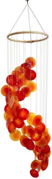 Mobile en coquillages en forme de spirale avec des nuances de couleurs chaudes : Jaune, Orange et Rouge. Le manque de soleil peut influencer fortement notre humeur. Attachez un attrape soleil devant votre vitre afin de profiter des doux rayons du soleil. Vous apprécierez les reflets qu'ils projetteront dans votre foyer, autant de couleur et de gaieté pour vos journées. La manière dont le verre a été coulé lors de la création de l'attrape soleil lui permet de refléter la lumière dans toutes les directions. Les aspérités crées intentionnellement lui permettent d'être actif à la fois sur votre caractère et sur votre santé. Hauteur 80 cm - Diamètre : 14 cm