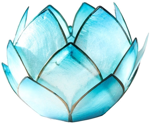 Bougeoir pour le crépuscule en forme de lotus pour bougies de type chauffe-plat. Disponible en plusieurs coloris. Déposez une bougie au cœur du lotus, et ajoutez une touche florale et colorée à vos tables. Les bougeoirs sont composés de 3 rangées de pétales qui se renferment sur elles-mêmes et garantissent un bel effet de volume. Leur aspect semi-métallique donnera de jolis jeux de lumières avec la flamme des bougies. Ce type de photophore est idéal aussi pour méditer sur un chakra précis grâce à sa couleur (chromothérapie). Les pétales sont en nacre et sertis d'étain. Le nettoyage se fait avec un linge légèrement humide. Diamètre environ 14 cm. Conditionnement en boite individuelle en carton. Vendu sans bougies.
