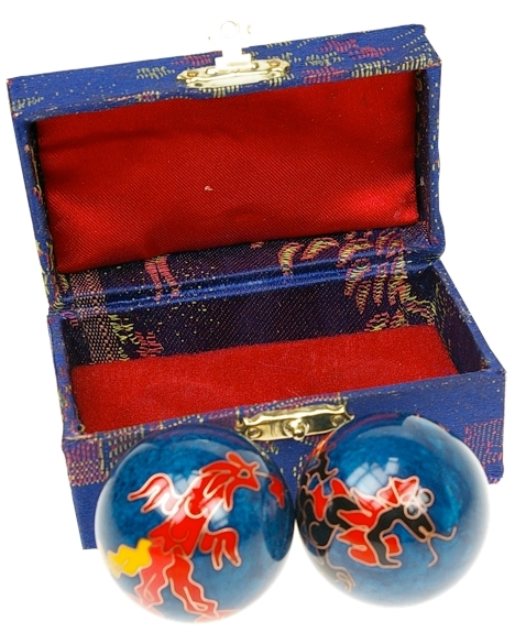 Traditionnelles boules de Qi Gong, parfaitement adaptées aux besoins de l'homme moderne, elles stimulent durablement les principaux méridiens, réharmonisent l'ensemble du corps en faisant circuler en nous le Chi, principe de l'énergie vitale. Nos paumes étant le siège de nos émotions et de notre vie spirituelle, les boules de Qi Gong apportent aussi un plus à l'évolution de notre être tout entier. Diamètre 4 cm. Livrées dans leur boite traditionnelle chinoise.Les boules Qi Gong sont composées de métal et de cuivre, recouvertes d'une couche en résine.