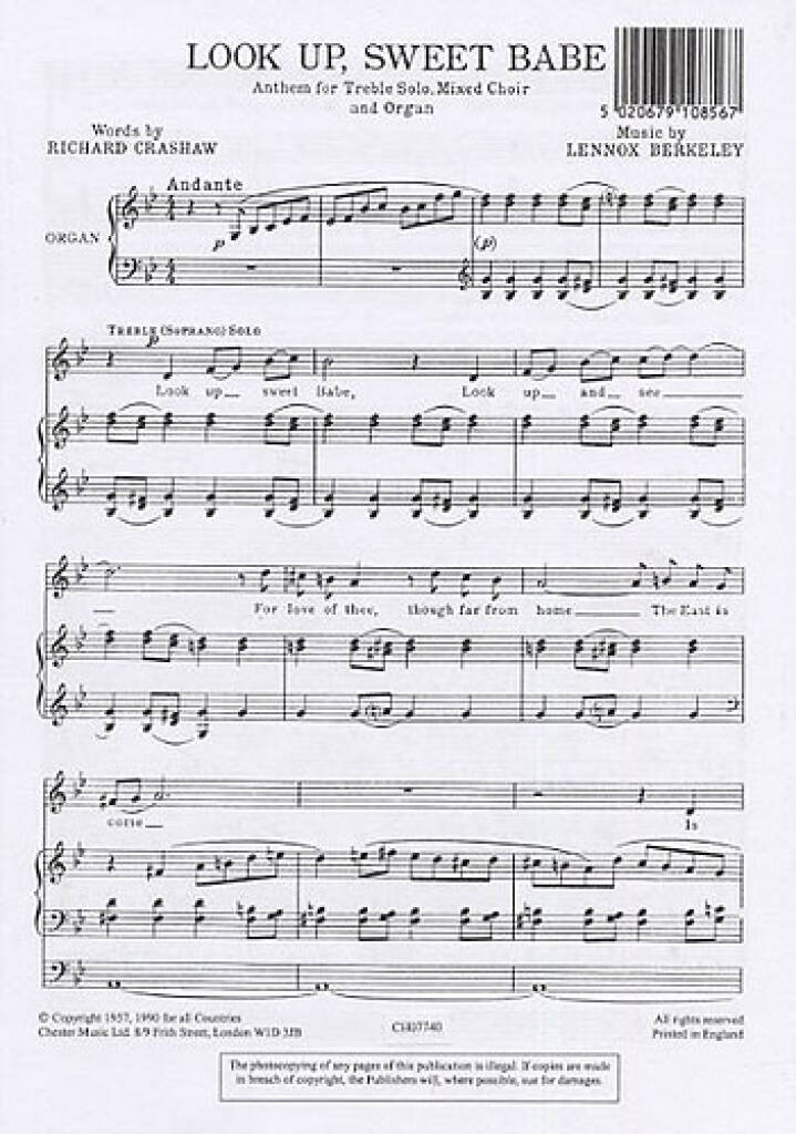 LENNOX BERKELEY: LOOK UP SWEET BABE OP.43 NO.2 CHANT