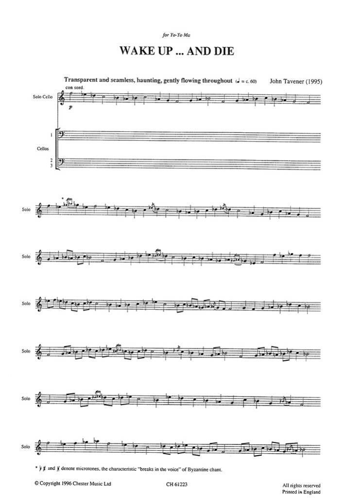 JOHN TAVENER: WAKE UP AND DIE (SCORE AND PARTS)