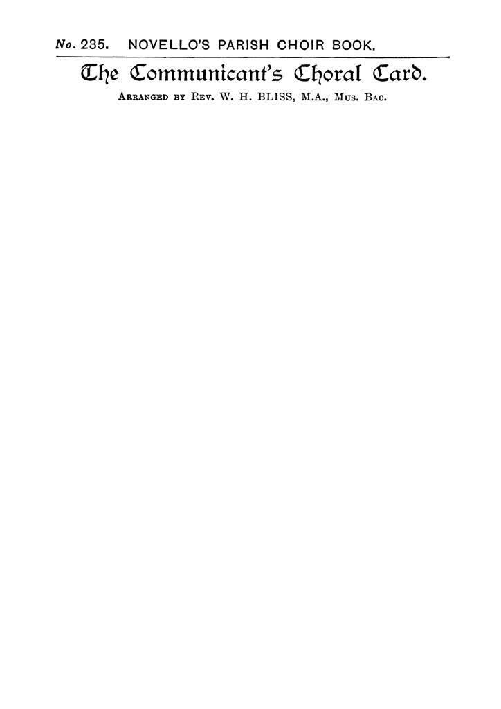 W.H. BLISS: THE COMMUNICANT`S CHORAL CARD SATB/ORGAN CHANT