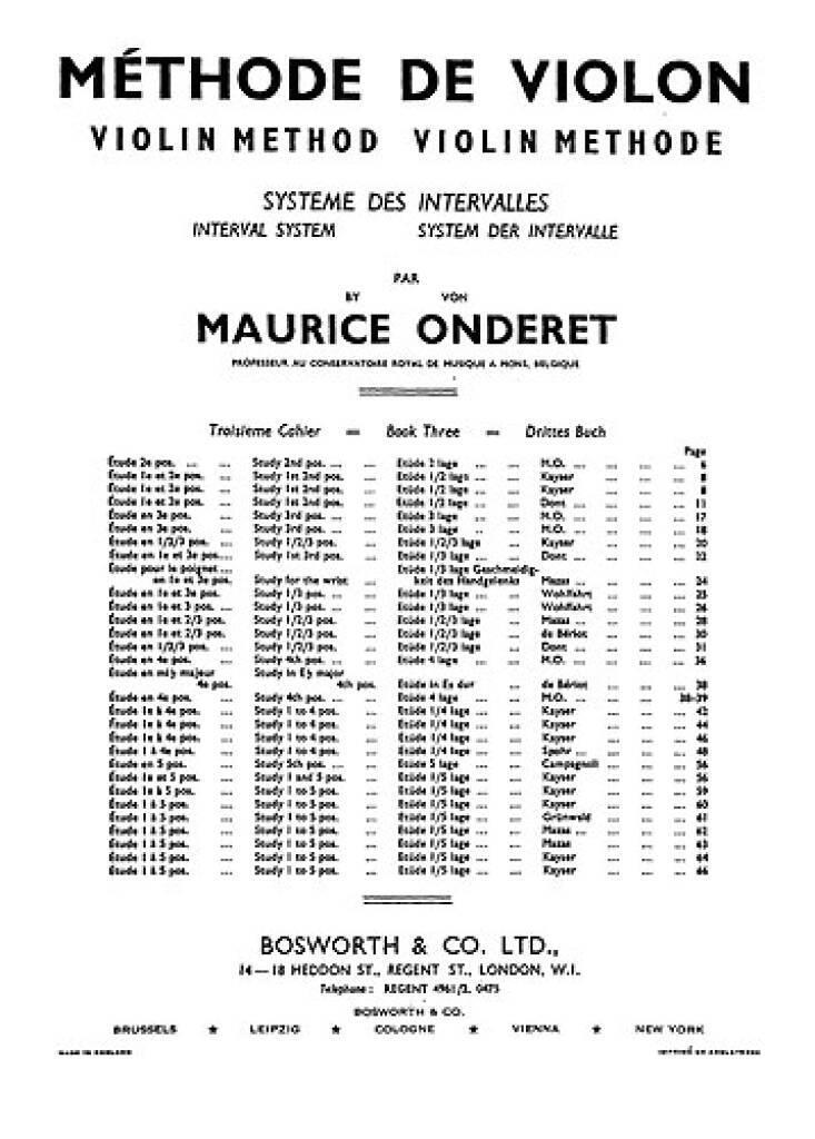 MAURICE ONDERET: VIOLIN METHOD BOOK 3