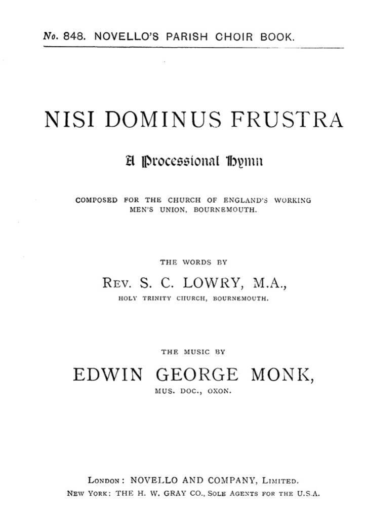 EDWIN GEORGE MONK: NISI DOMINUS FRUSTRA (HYMN) SATB/ORGAN CHANT