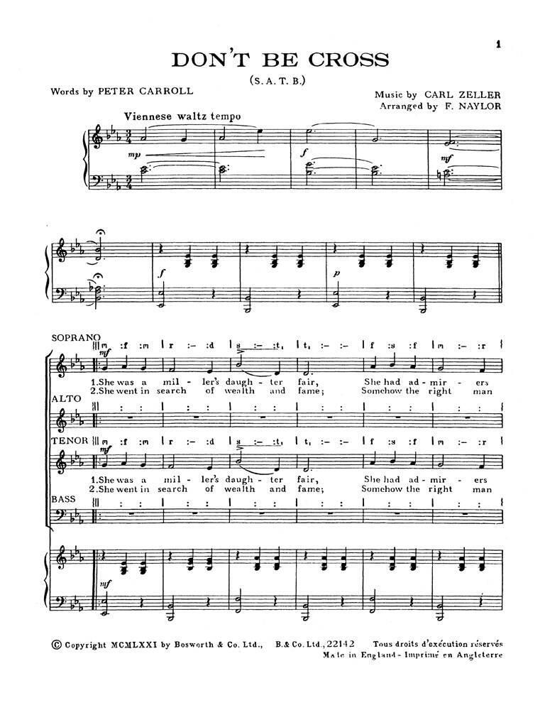 ZELLER, C DON'T BE CROSS SATB CHANT