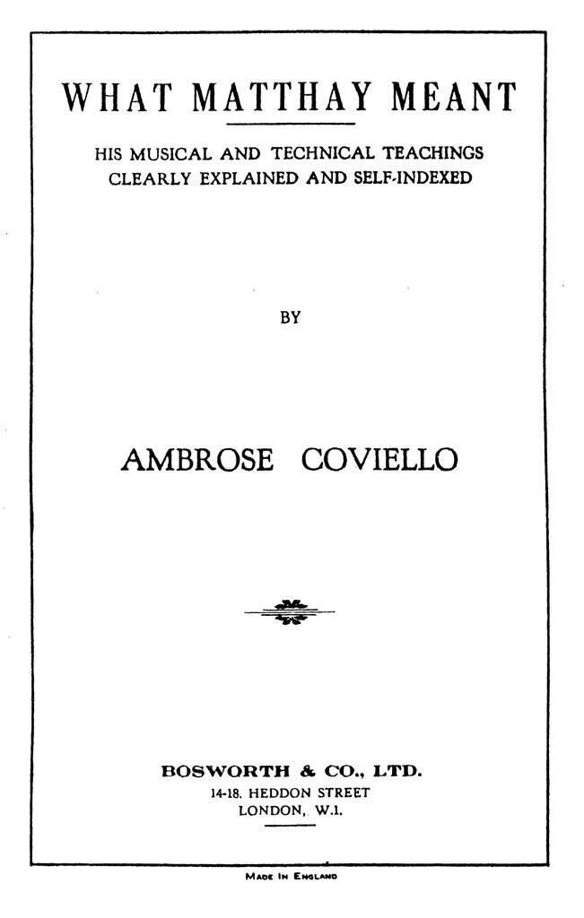 AMBROSE COVIELLO: WHAT MATTHAY MEANT LIVRE SUR LA MUSIQUE